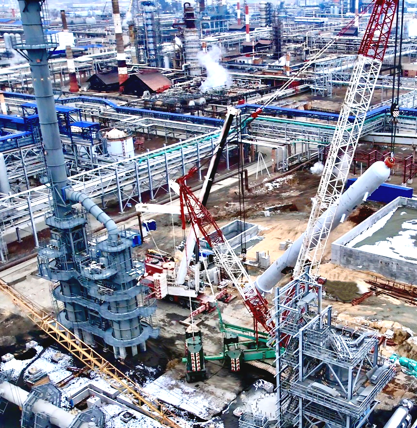 На Установке гидроочистки бензиновых и дизельных фракций, относящейся к проекту: "Комплекс замедленного коксования" (г. Орск), выполнен монтаж реактора "Р-02" массой 189,5 тн.